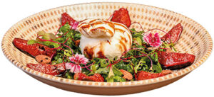 1. Burrata, en cama de portobellos, arúgula y chimichurri de albahaca.